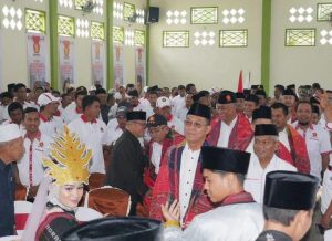 Dalam kesempatan tersebut, Ketua DPD Gerindra Sumut Gus Irawan Pasaribu dan pengurus lainnya disematkan kain ulos sebagai simbol kehormatan dari Ketua DPC Gerindra Padang Lawas.