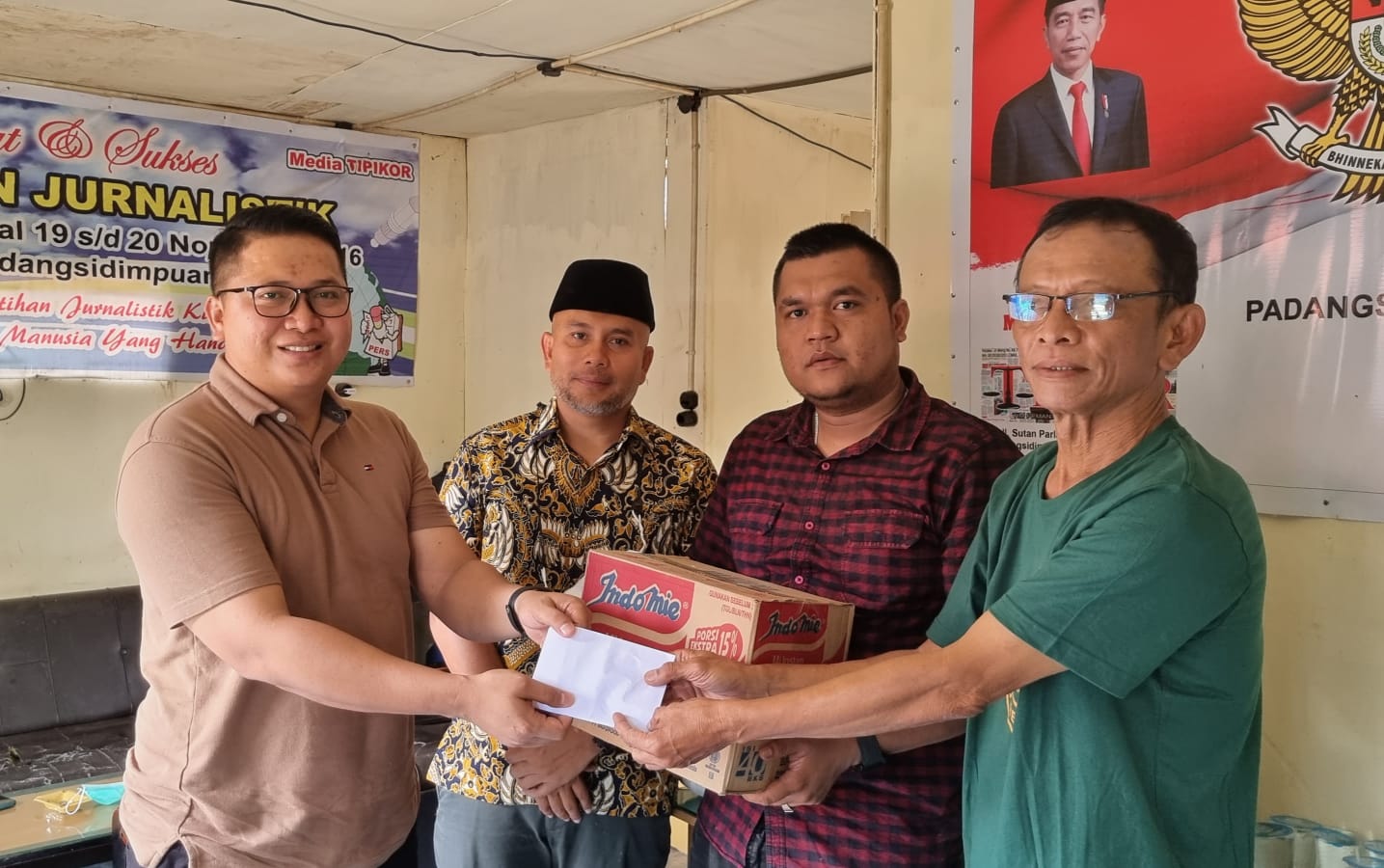 PADANGSIDIMPUAN-Ketua Dewan Pimpinan Cabang (DPC) Partai Gerakan Indonesia Raya (Gerindra) Kota Padangsidimpuan, Sumatera Utara, Rusydi Nasution, bantu Suhut Gultom seorang wartawan yang jadi korban kebakaran beberapa waktu lalu.
