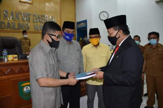 Sementara itu, Bupati Madina Drs.H. Dahlan Hasan Nasution dalam sambutannya mengatakan, penyampaian rancangan perubahan KUA dan PPAS perubahan APBD 2020 merupakan konteks pelaksanaan pembangunan daerah dan implementasi otonomi daerah yang merupakan momentum strategis dalam rangka percepatan pembangunan daerah dan pemulihan ekonomi akibat pendemi Covid-19.
