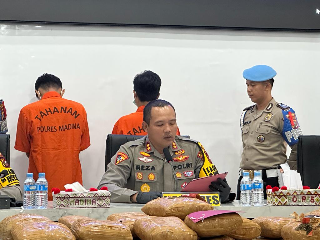 Diketahui keduaanya berinisial DP (24) dan MF (28). Saat itu, petugas kepolisian mendapatkan informasi masyarakat bahwa di areal Jalan Lintas Tambangan diduga sedang melakukan transaksi narkotika jenis ganja.