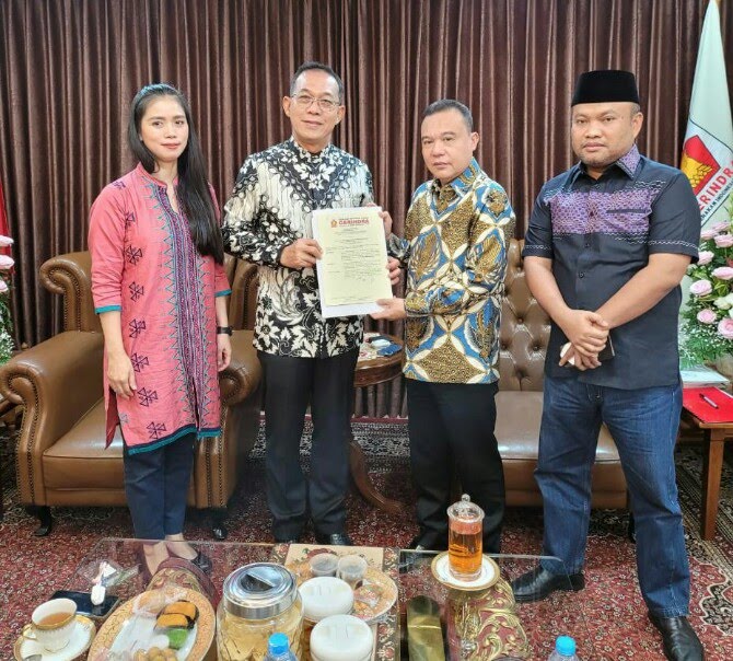 Medan- Ketua DPD Gerindra Sumut Gus Irawan Pasaribu menerima langsung SK Revitalisasi kepengurusan baru di Partai Gerakan Indonesia Raya (Gerindra) Sumatera Utara (Sumut) dari Ketua Harian DPP Gerindra, Prof Dr Sufmi A Dasco, SH MH.