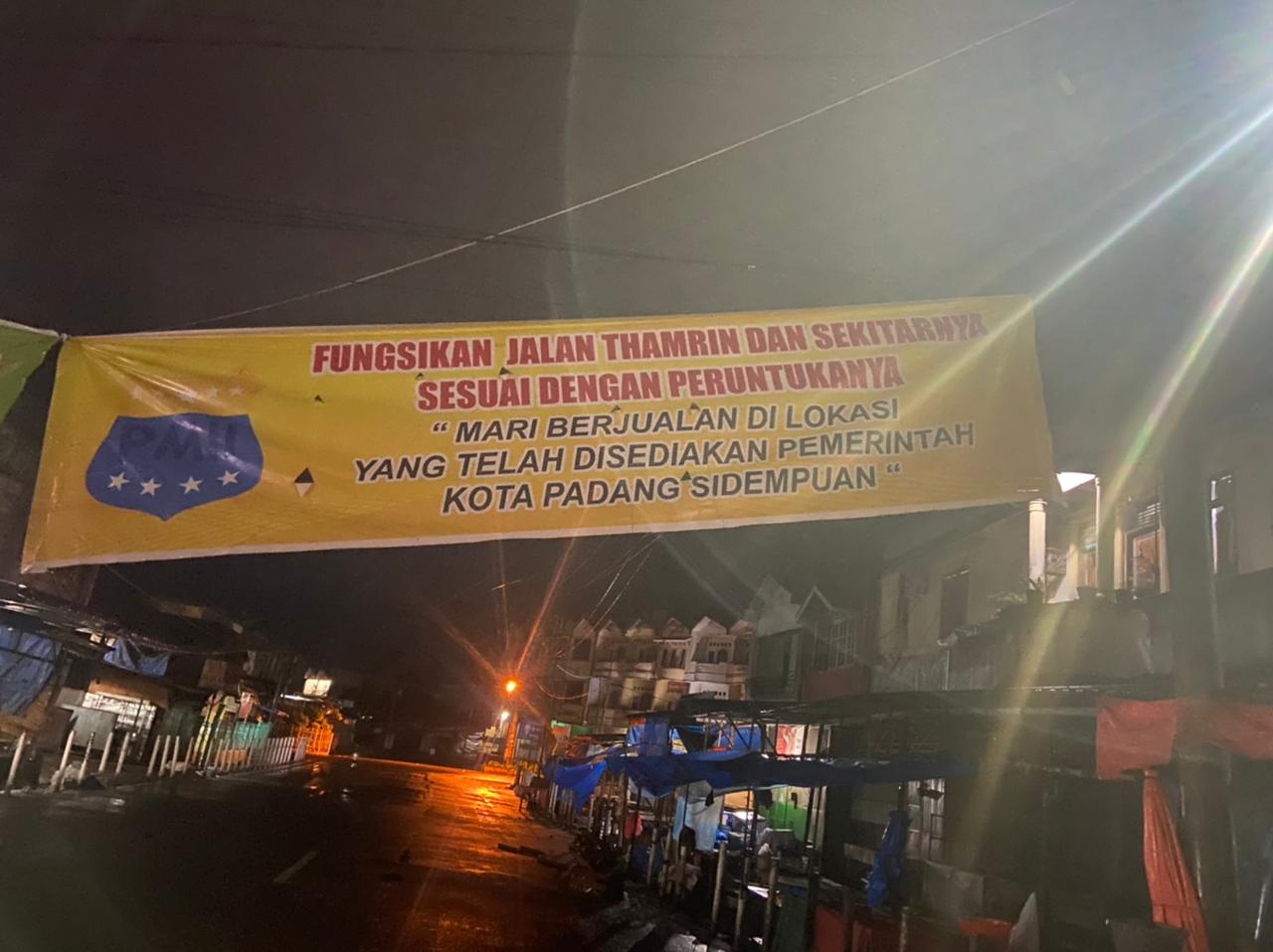 Dalam spanduk berwarna kuning terbentang di sekitar jalan Thamrin, Kecamatan Padangsidimpuan Utara, tempat para Pedagang Kaki Lima (PKL) berjualan. Spanduk tersebut berisikan logo PMII dan berisi tulisan “FUNGSIKAN JALAN THAMRIN DAN SEKITARNYA SESUAI DENGAN PERUNTUKANYA, MARI BERJUALAN DI LOKASI YANG DISEDIAKAN PEMERINTAH KOTA PADANGSIDIMPUAN”. Pemasangan spanduk yang diduga telah dicatut oleh salah satu pihak yang sangat merugikan organisasi kemahasiswaan itu.