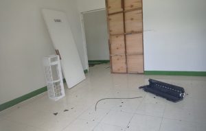 “Fasilitas di dalam gedung seperti konsen jendela, kabel, engsel pintu dan AC sekitar 8 unit telah hilang. Kemudian, banyak juga barang yang telah dirusak dilokasi,” paparnya.