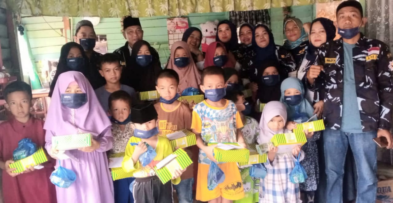 PADANGSIDIMPUAN-Dewan Pimpinan Daerah (DPD) Angkatan Muda Pembaharuan Indonesia (AMPI) Kota Padangsidimpuan, Sumatera Utara (Sumut) santuni puluhan anak yatim di Kampung Selamat, Kecamatan Padangsidimpuan Utara, Jumat (19/11/2021).