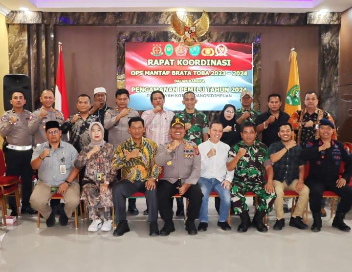 PADANGSIDIMPUAN- Kapolres Padangsidimpuan AKBP Dudung Setyawan memimpin langsung rapat koordinasi lintas sektoral dalam rangka kesiapan Pengamanan Pemilu 2024 di wilayah Kota Padangsidimpuan, Jumat (13/10/2023).
