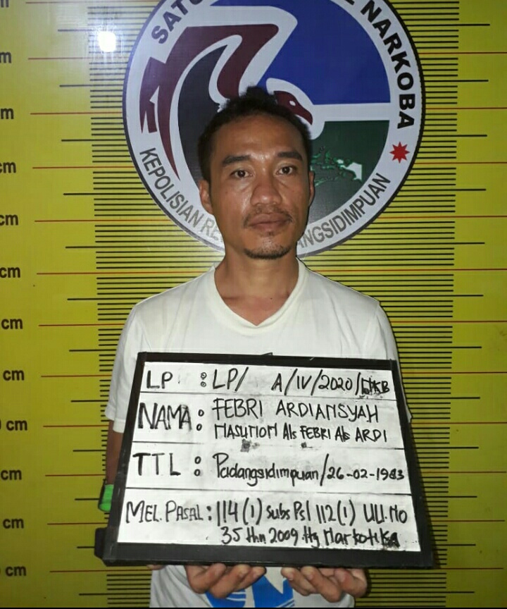PADANGSIDIMPUAN-Febri Ardiansyah Nasution (37), ditangkap Satnarkoba Polres Padangsidimpuan di Jalan Pelita, Gang Makmur, Kecamatan Padangsidimpuan Selatan, Kota Padangsidimpuan, Rabu (29/4/2020).