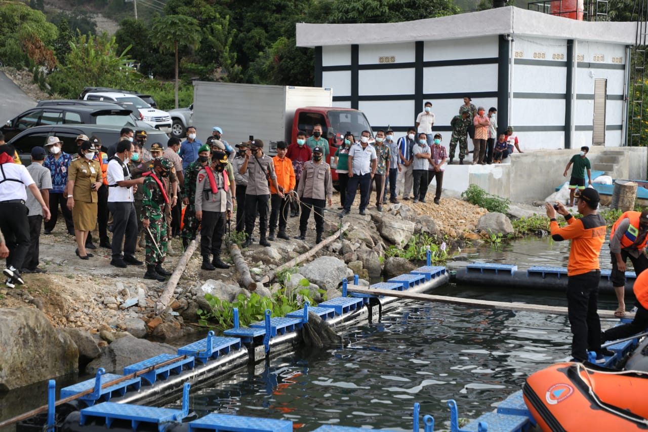 DANAU TOBA-Danau Toba- Kapolda Sumut Irjen Pol RZ Panca Putra bersama Pangdam I/BB Mayjen TNI Hassanuddin meninjau penertiban Keramba Jaring Apung (KJA) oleh Kapolda Sumatera Utara dan Pangdam I Bukit Barisan di Kecanatan Baktiraja Kabupaten Humbahas, Kamis (06/05).