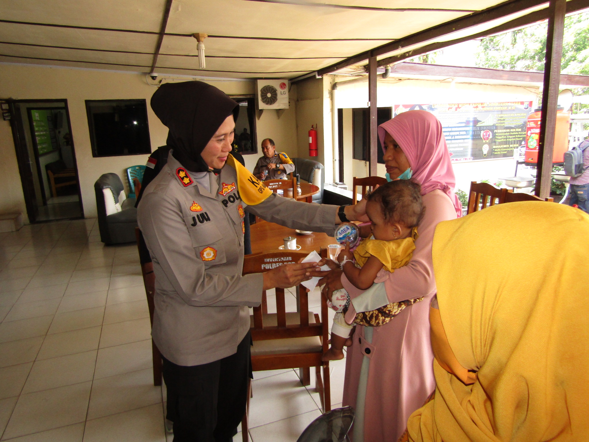 Padangsidimpuan- Kepala Kopolisian resort Kota Padangsidimpuan Ajun Komisaris Besar Polisi (AKBP) Juliani Prihartini berikan santunan kepada anak korban pembunuhan disimarsayang, Kamis, 06/08/2020.