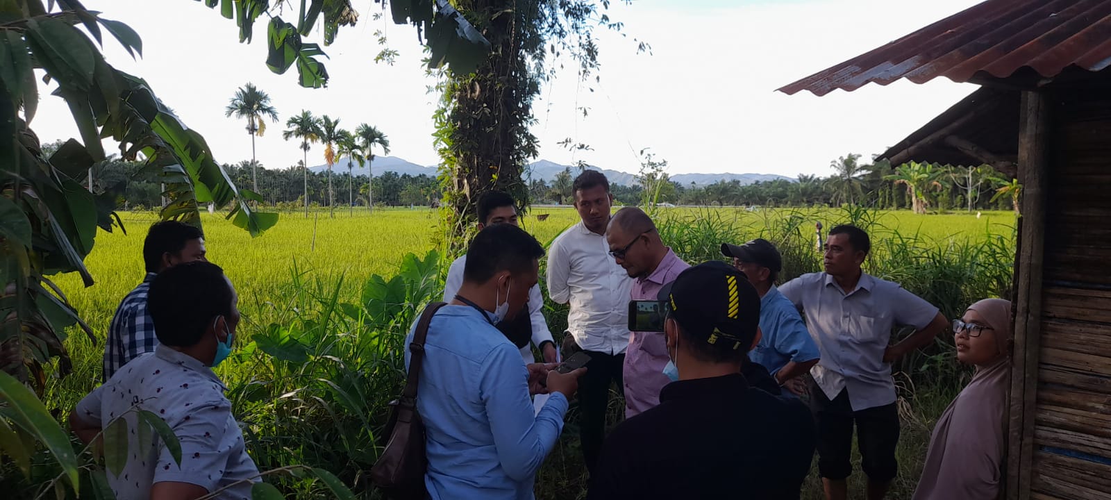 PADANG LAWAS-Tim Penyidik dari Polres Padang Lawas, Sumatera Utara, meninjau lokasi sebidang lahan sawah yang diperkarakan, Senin (7/2). Tindakan tersebut dilakukan pihak kepolisian sebelulm gelar perkara di Mapolres Palas.