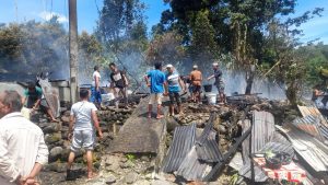 “Warga membantu memadamkan api dengan peralatan seadanya namun warga tidak dapat berbuat banyak sehingga ketiga rumah hangus terbakar,” katanya.