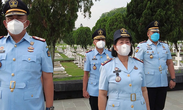 MEDAN (MM) – Memperingati Hari Bhakti Pemasyarakatan ke-58 tahun 2022, Kepala Kantor Imigrasi Kelas I TPI Polonia Yan Wely Wiguna bersama pejabat struktural mengikuti upacara sekaligus tabur bunga di Taman Makam Pahlawan (TMP) Bukit Barisan, Jalan Sisingamangaraja Medan, Kamis (21/4/2022).