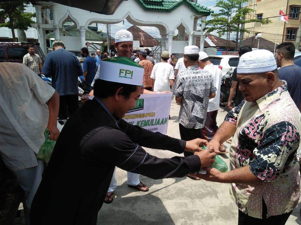 PADANGSIDIMPUAN– Komunitas Bersama Makmurkan Masjid (BMM), DPD BKPRMI dan DPW FPI, melaksanakan program nasi untuk kemuliaan kepada kepada puluhan jemaah Salat Jumat di Masjid Al-Ikhlas Samora, Kecamatan Padangsidimpuan Utara, Kota Padangsidimpuan, (21/08/2020).