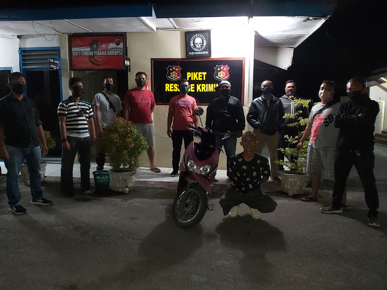PADANGSIDIMPUAN-Lagi menunggu beduk berbuka puasa, di rumahnya di Jalan Dr Payungan Dalimunthe, Gang Sehat, TSP, diduga pelaku pencurian sepeda motor ditangkap personil Satreskrim Polres Padangsidimpuan.