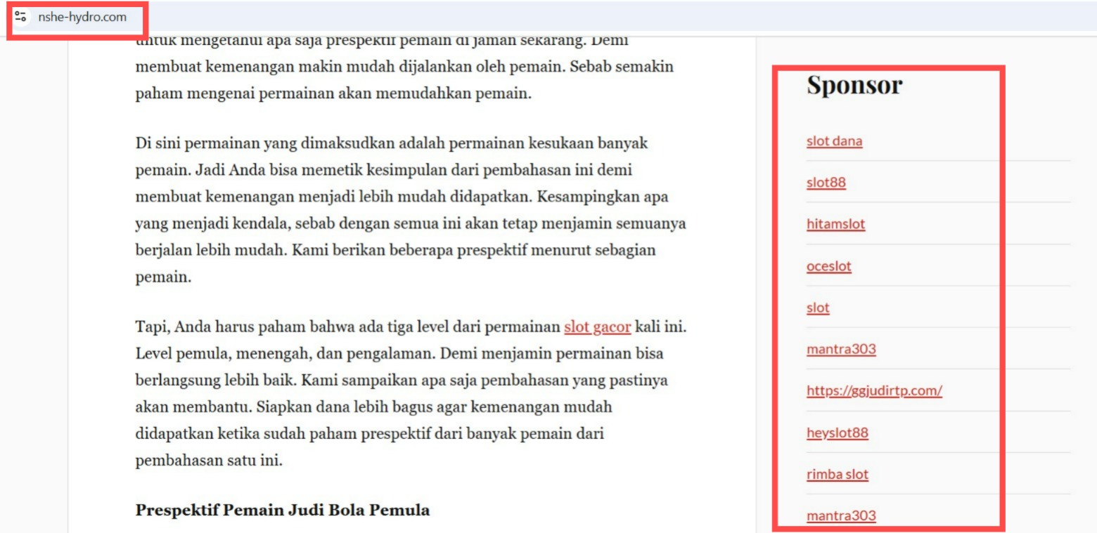 TAPANULI SELATAN (LENSAKINI) – Publik dibuat terkejut sekaligus bingung setelah menemukan bahwa website www.nshe-hydro.com, yang selama ini diklaim sebagai situs resmi PT North Sumatera Hydro Energy (NSHE), justru menampilkan konten perjudian online.