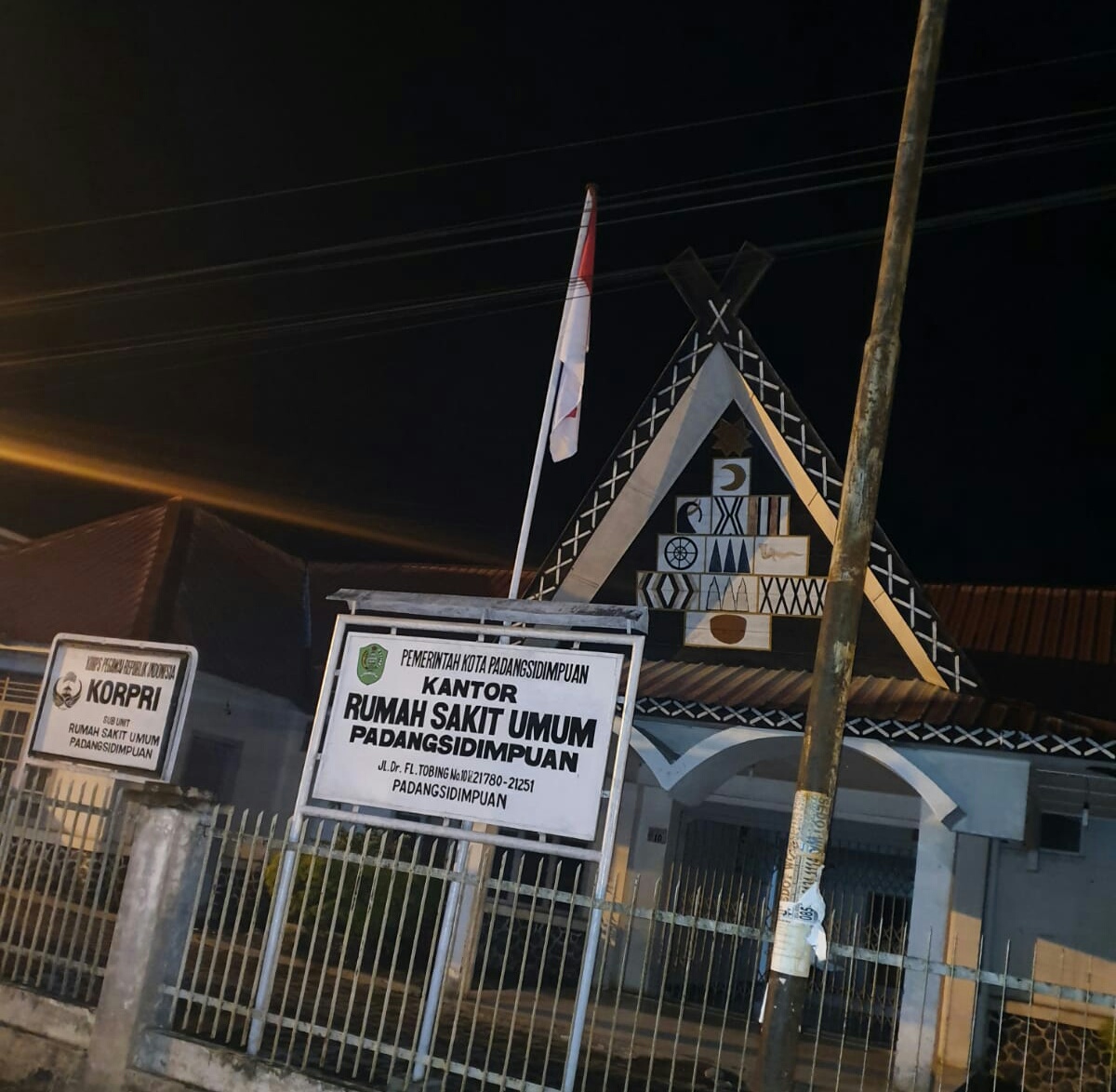 PADANGSIDIMPUAN-Bendera merah putih dibiarkan berkibar hingga tengah malam di RSUD Padangsidimpuan, Sumatera Utara (Sumut).