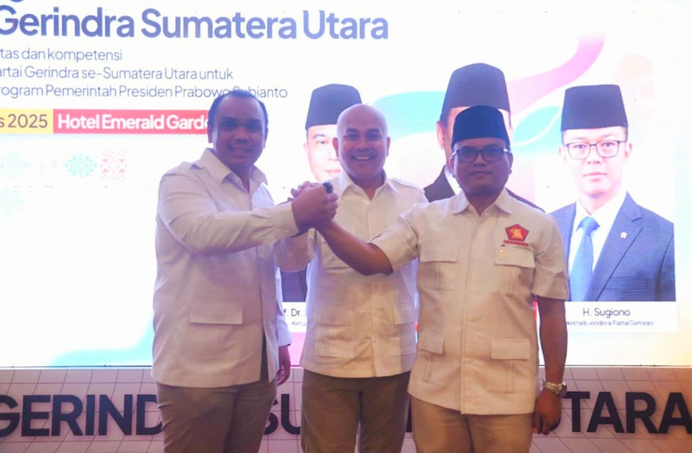 MEDAN-Wali Kota Padangsidimpuan Letnan Dalimunthe, Wakil Wali Kota, Harry Pahlevi Harahap dan Pimpinan DPRD Padangsidimpuan, Rusydi Nasution, kompak hadiri rapat Bimbingan Teknis (Bimtek) Partai Gerakan Indonesia Raya (Gerindra) di Emerald Garden , Medan.Sumatera Utara (9/8/2025)