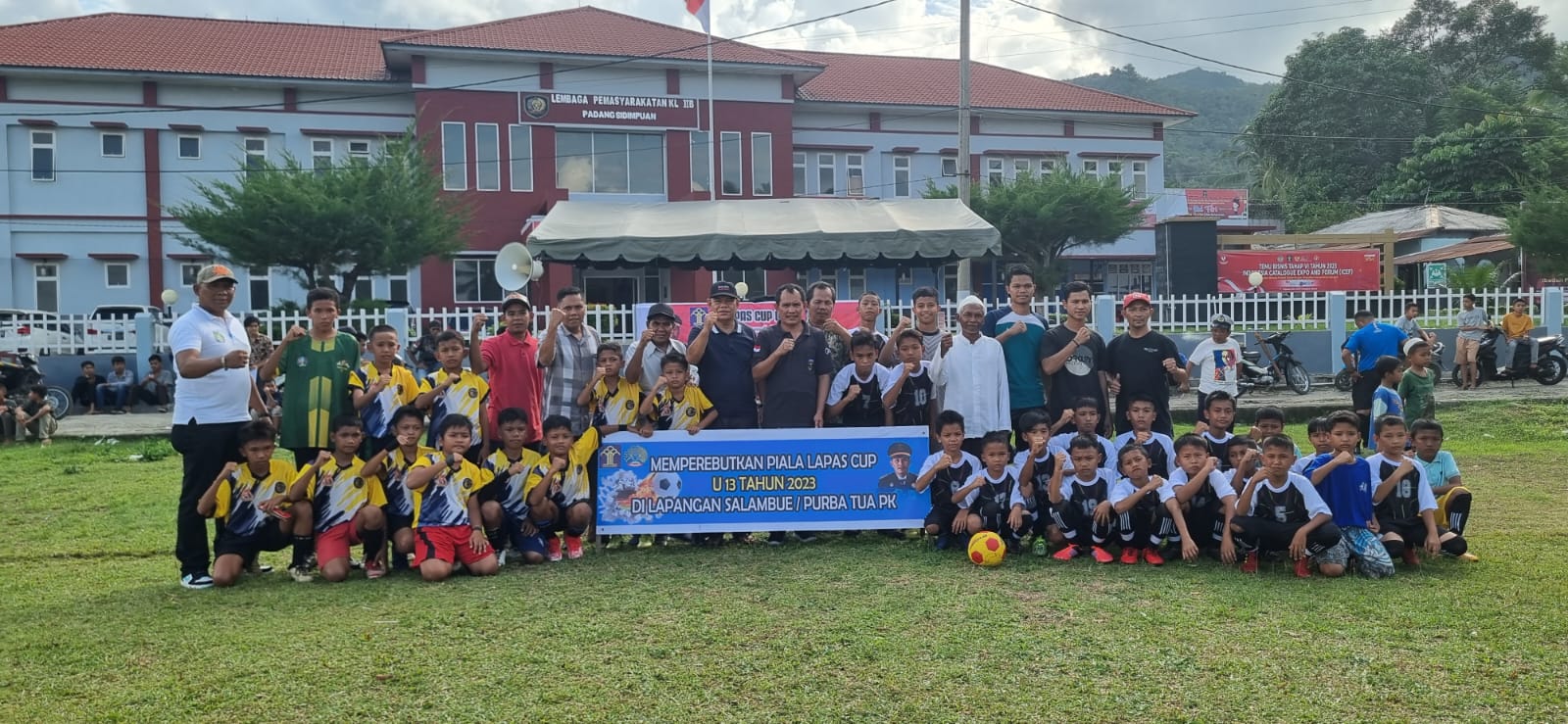 PADANGSIDIMPUAN- Gandeng masyarakat Desa Purba Tua dan Desa Salambue Kecamatan Padangsidimpuan Tenggara, Kalapas Kelas IIB Padangsidimpuan Kanwil Kemenkumham Sumut gelar turnamen sepakbola U13 untuk warga sekitar Lapas.