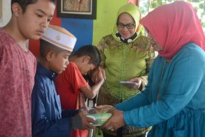 PADANGSIDIMPUAN– Komunitas Kaum Perempuan Tapanuli Bagian Selatan (Tabagsel) berbagai Kepada puluhan anak yatim di Kota Padangsidimpuan, Sumatera Utara, Senin (08/6/2020).