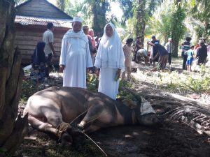 MANDAILING NATAL-Warga di Desa Tabuyung, Kecamatan Muara Batang Gadis, Kabupaten Mandailing Natal (Madina), Sumatera Utara (Sumut), berkurban sebanyak 33 ekor kerbau dan sapi.