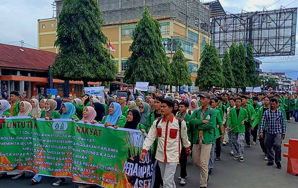 PADANGSIDIMPUAN (LENSAKINI)-Ratusan mahasiswa Universitas Islam Negeri (UIN) Syahada Kota Padangsidimpuan, Sumatera Utara, menggelar aksi unjuk rasa di kantor DPRD setempat.