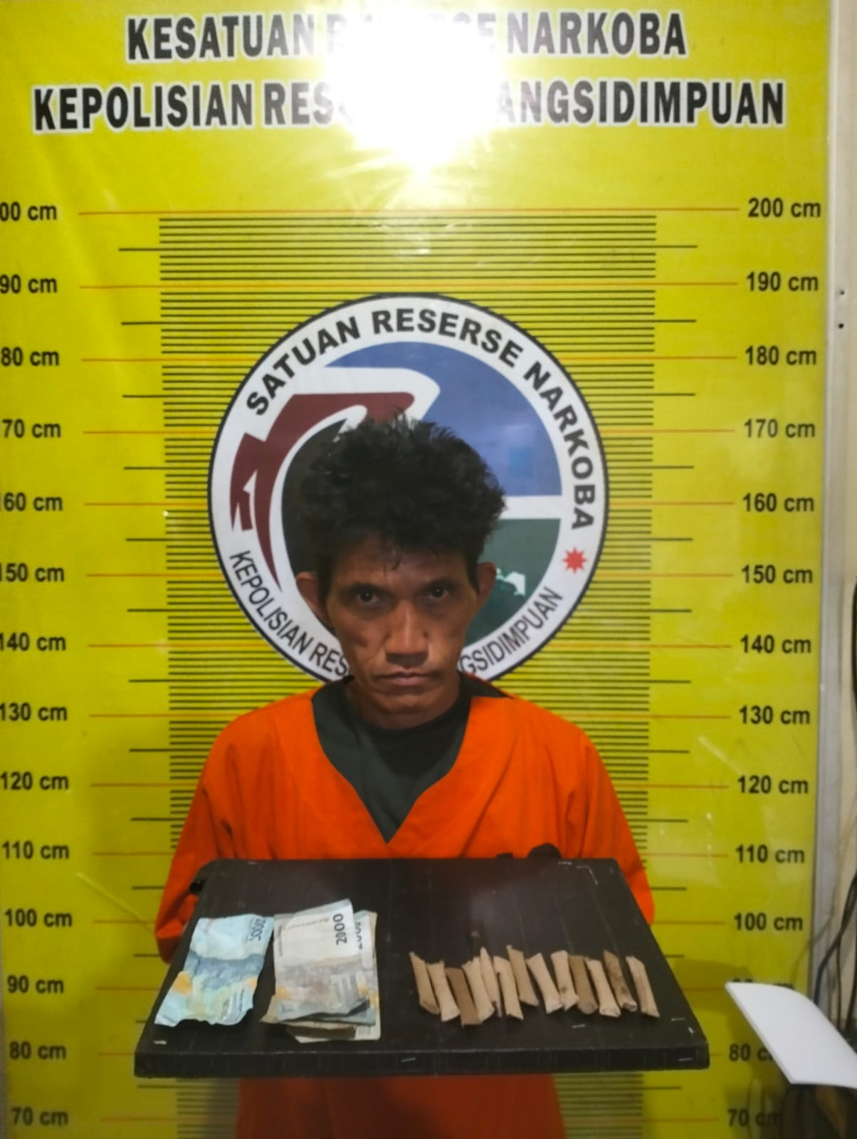 PADANGSIDIMPUAN- Pengedar ganja di Kelurahan Sihitang, Kecamatan Padangsidimpuan Tenggara, Kota Padangsidimpuan berhasil ditangkap personel Polres Padangsidimpuan.