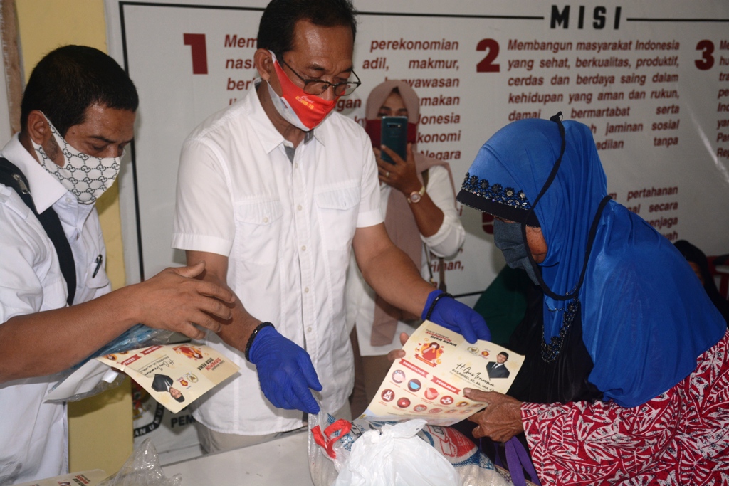 PADANGSIDIMPUAN-Penuhi janji, anggota DPR RI Gus Irawan Pasaribu bersama DPC Partai Gerindra Kota Padangsidimpuan, Sumatera Utara (Sumut), memberikan bantuan paket sembako kepada seratusan warga, Rabu (10/6/2020).
