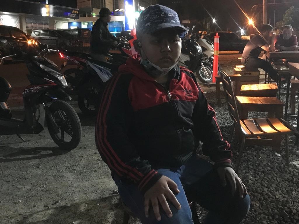 Gayung bersambut, salah seorang rekan satu meja penulis langsung memanggil bocah tersebut sembari bercerita tentang sedikit latar belakang. Ketika mulai duduk, spontan rekan-rekan penulis langsung menawarkan makan dan minum. Mungkin, mereka juga kasihan melihat perjuangan hidup Rizky, nama panggilannya.