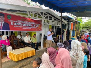 PADANGSIDIMPUAN- Wakil Ketua DPRD, H Rusydi Nasution melaksanakan reses di Jalan H Ismail Gang Keluarga Ujung Kelurahan Losung, Kecamatan Padangsidimpuan Selatan, Kamis (7/12/2023).