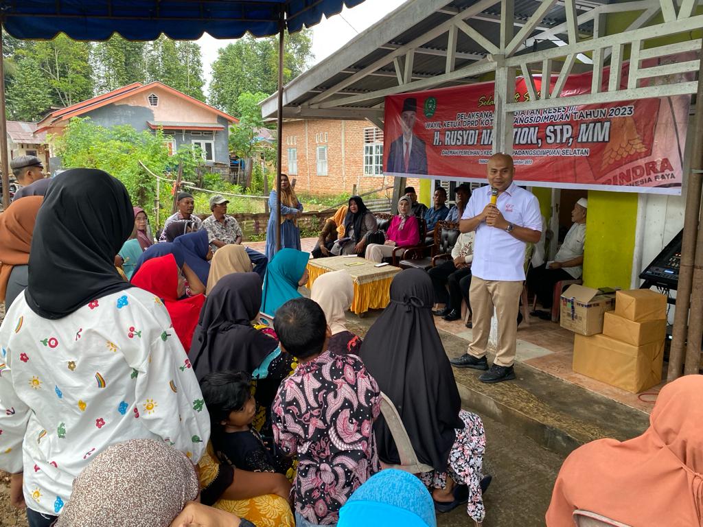 PADANGSIDIMPUAN- Wakil Ketua DPRD, H Rusydi Nasution melaksanakan reses di Jalan H Ismail Gang Keluarga Ujung Kelurahan Losung, Kecamatan Padangsidimpuan Selatan, Kamis (7/12/2023).