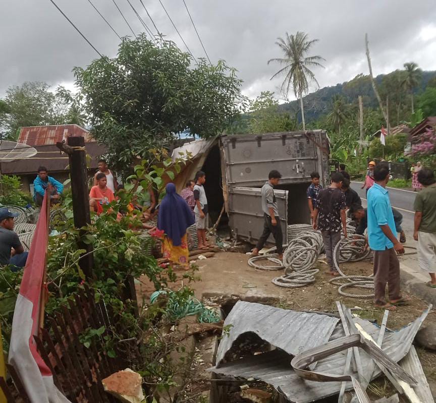 “Posisi truk terguling ke kiri. Sedangkan salah seorang warga Desa Sisipa meninggal dunia karena tertimpa truk. Kalau sopir Alhamdulillah selamat,” ujar Kades Padang Lancat.