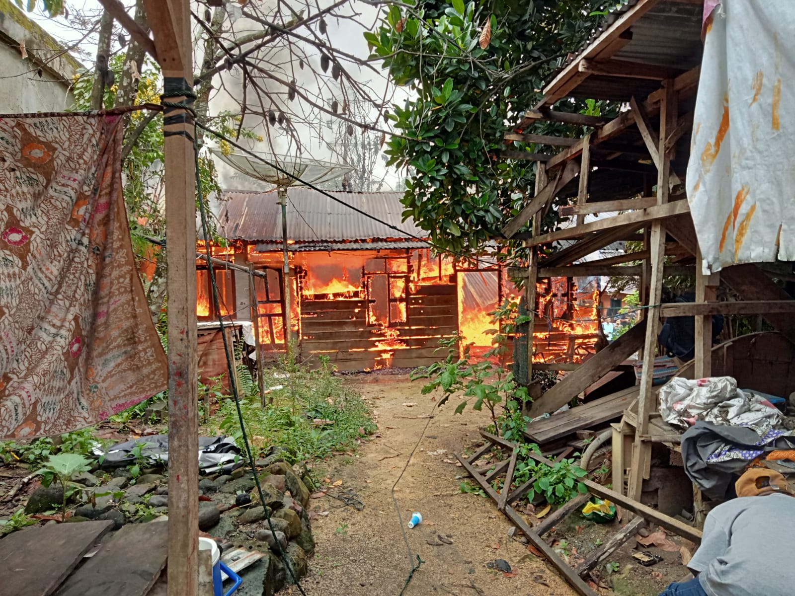 PADANGSIDIMPUAN- Satu unit rumah semi permanen terbakar di lingkungan 1 gang Lentera, Kelurahan Sihitang Kecamatan Padangsidimpuan Tenggara, Rabu (6/12/2023).