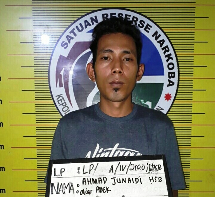 PADANGSIDIMPUAN-Kantongi narkoba, Ahmad Junaidi Hasibuan (30), warga Jalan Sutoyo, Kelurahan Bincar, Kecamatan Padangsidimpuan Utara, Kota Padangsidimpuan ditangkap polisi.