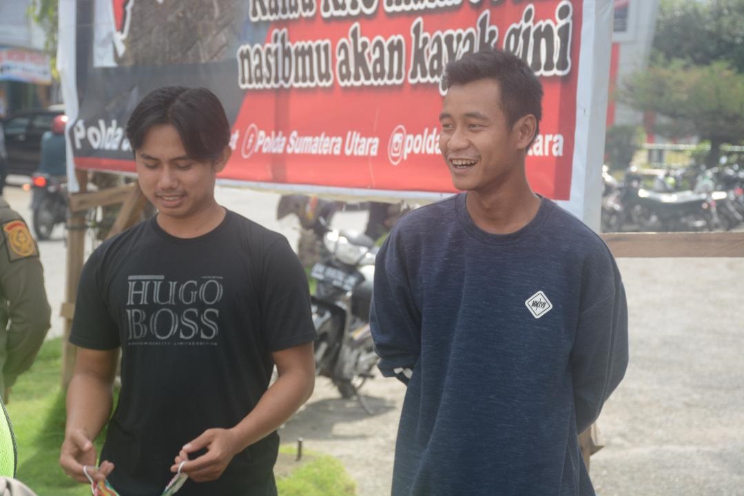 Rabu (25/11) sejumlah pengendara yang melintas di depan Pos Kota Jalan Sudirman Kota Padangsidimpuan, terjaring operasi, tidak terkecuali Faisal Abid dan Wahyu. Mereka terjaring karena tidak menggunakan masker ketika berkendaraan.