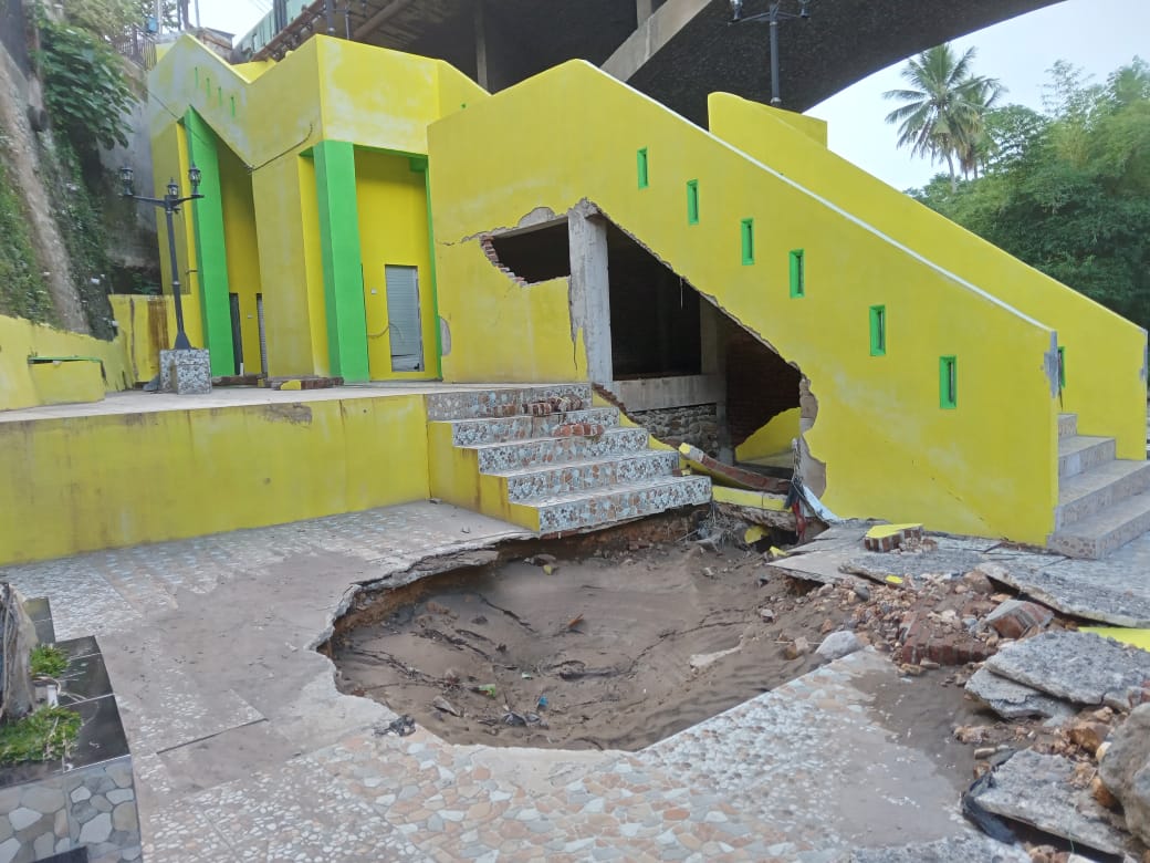 PADANGSIDIMPUAN- Pembangunan Dek Penahan Sungai Kelurahan Kantin atau taman dengan pagu anggaran Rp2,3 Miliar baru saja selesai dikerjakan namun sudah rusak parah dalam tahap penyelidikan Polres Padangsidimpuan, Rabu (03/05/2023).