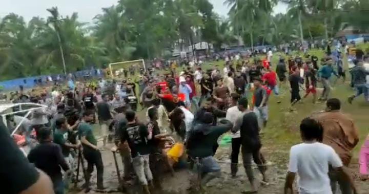 MADINA- Kericuhan antar suporter terjadi pada Open Turnamen Sepak bola Bopas Cup IV 2022 di lapangan sepakbola Desa Bonda Kase, Kecamatan Natal, Kabupaten Mandailing Natal.