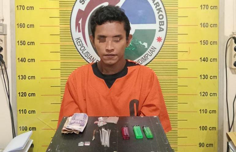 Dari tangan tersangka, petugas berhasil mengamankan sejumlah barang bukti berupa 2 bungkus plastik klip transparan yang berisikan Narkotika golongan 1 jenis sabu seberat 0,18 gram, 1 buah kaca pirex, 13 bungkus klip transparan kosong, 7 buah pipet dari plastik, 3 buah mancis dan uang tunai.