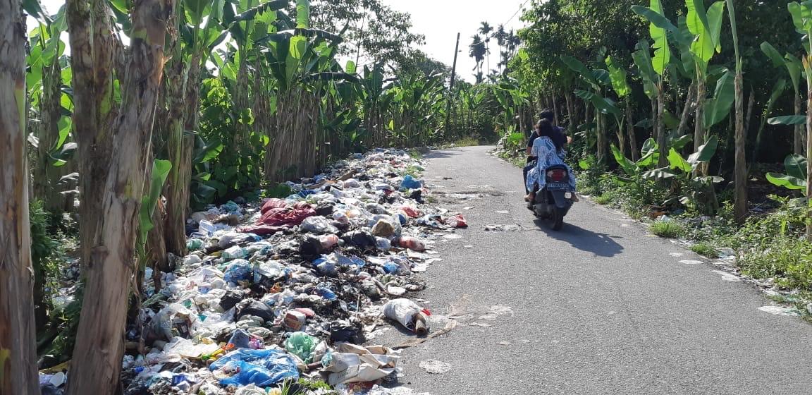 Selain sampah-sampah yang mulai menggunung, aroma busuk yang menyengat hidung juga acap terhirup tatkala warga melintasi jalan yang dikelilingi Pohon Pisang.