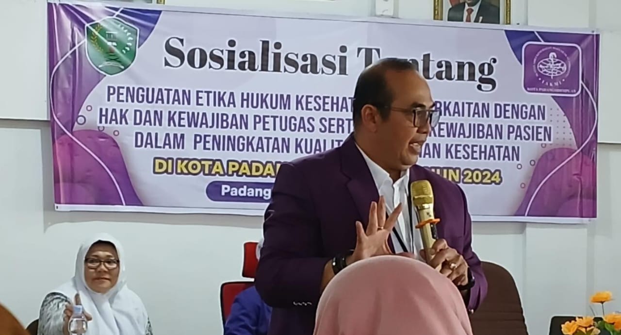 PADANGSIDIMPUAN- Pengurus Cabang (Pengcab) Ikatan Ahli Kesehatan Masyarakat Indonesia (IAKMI) Kota Padangsidimpuan membagikan solusi dalam meningkatkan pelayanan kesehatan melalui sosialisasi penguatan etika hukum bagi pasien dan petugas kesehatan.