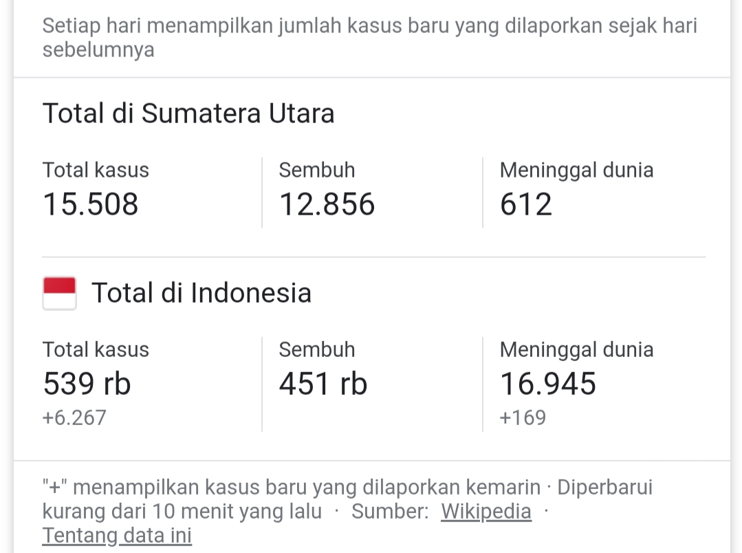 Data tersebut dihimpun Kementerian Kesehatan (Kemenkes) hingga pukul 12.00 WIB. Satgas Covid-19 mempublikasikannya sekitar pukul 15.35 WIB