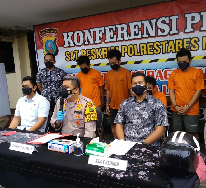 “Para pelaku saat ditangkap di salah satu kawasan di Kota Medan melawan dan melarikan diri, sehingga petugas yang melakukan penangkapan terpaksa menembak kaki para pelaku tersebut, kata Kombes Pol Riko Sunarko kepada wartawan di Mapolrestabes Medan, Jumat (6/8/2021)