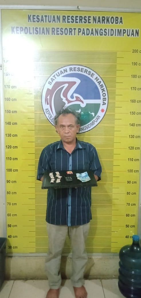 PADANGSIDIMPUAN- Ibrahim Lubis, pria setengah abad asal Kantin Lombang, Kecamatan Padangsidimpuan Utara, Kota Padangsidimpuan, Sumut, ditangkap Satresnarkoba.