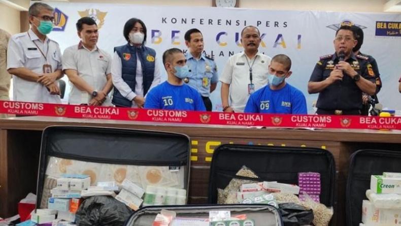 Kepala Bea Cukai Kualanamu Elfi Haris mengatakan, kedua warga Malaysia itu ditangkap setelah petugas bandara melakukan analisis dan profiling. Petugas juga mencurigai barang bawaan keduanya saat melewati mesin X-ray.