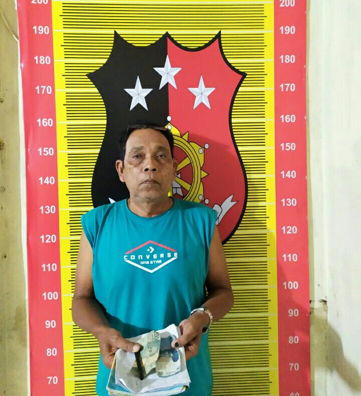 SH ditangkap saat menulis rekap angka judi jenis Kim disalah satu warung di Jalan Tonga, Selasa (20/10/2020). Tak heran, dari tangan pria lanjut usia tersebut diamankan barang bukti berupa, 1 buku tulis, 1 unit telepon seluler dan uang tunai sebanyak Rp. 52.000.