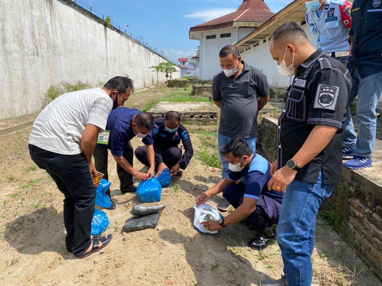 Setelah dilakukan pemeriksaan di lokasi yang dicurigai ditemukan bungkusan plastik yang dicurigai berisi narkoba, karena pertengahan Juni 2021 lalu juga ditemukan bungkusan yang dilemparkan dari luar tembok berisi ganja.