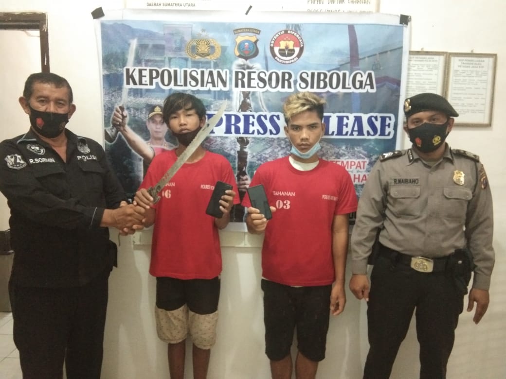 SIBOLGA – Dua tersangka pemalak yang mengancam menggorok menggunakan sebilah parang terhadap sepasang kekasih di tangga 100 Sibolga dibekuk Polres Sibolga.