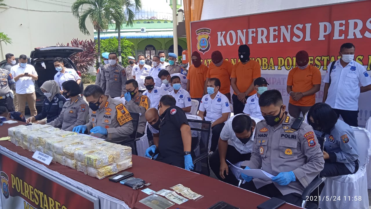 “Barang haram yang disita itu dikirim diperoleh dari Aceh Utara,” kata Kapolrestabe Medan Kombes Pol Riko Sunarko didampingi Kabid Humas Polda Sumut Kombes Hadi dan Kasat Narkoba Kompol Oloan Siahaan kepada wartawan di Mapolrestabes Medan, Senin (24/5/2021).