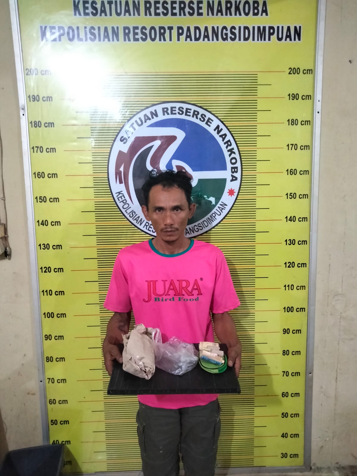 Kingkong ditangkap di Gang Perjuangan, Kelurahan Timbangan, Kota Padangsidimpuan. Dari tangan Kingkong, polisi menyita barang bukti berupa, 1 bungkus kertas warna coklat yang berisikan narkotika jenis ganja dan 3 bungkus paket kecil yang berisikan narkotika golongan I jenis ganja seberat 70 gram.