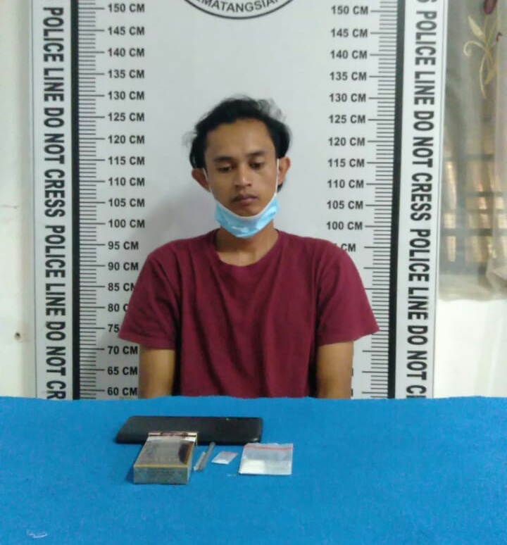PEMATANGSIANTAR-Simpan narkoba di bawah tempat tidur, seorang pria berinisial DS (25) warga Jalan Kenanga, Kelurahan Bukit Sofa, Kecamatan Siantar Sitalasari, ditangkap Satuan Reserse Narkoba Polresta Pematangsiantar, Selasa (9/3/2021).