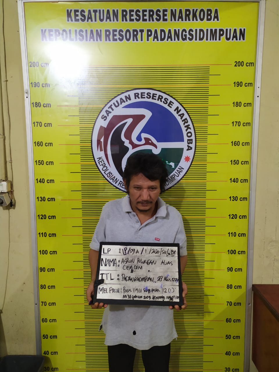 PADANGSIDIMPUAN-AP alias Cemcem, warga Kelurahan Bincar, Kecamatan Padangsidimpuan Utara, Kota Padangsidimpuan, ditangkap personil Satres Narkoba Polres Padangsidimpuan, Kamis (21/01/2021).
