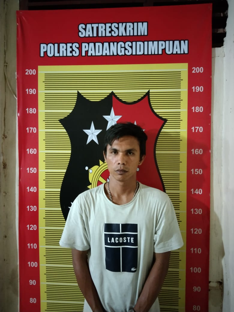 PADANGSIDIMPUAN-Sahat Maringin Martua (31), alias Kokom, warga Jalan Perintis Kemerdekaan, Kelurahan Padangmatinggi, Kecamatan Padangsidimpuan Selatan, Kota Padangsidimpuan, Sumatera Utara, ditangkap polisi.